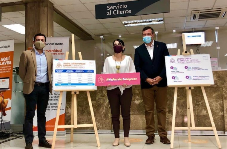 En este contexto la ministra de Desarrollo Social y Familia, Karla Rubilar, junto al subsecretario de Servicios Sociales, Sebastián Villarreal y al presidente de Banco Estado, Sebastián Sichel, lanzaron la campaña #NoPierdasTuIngreso.