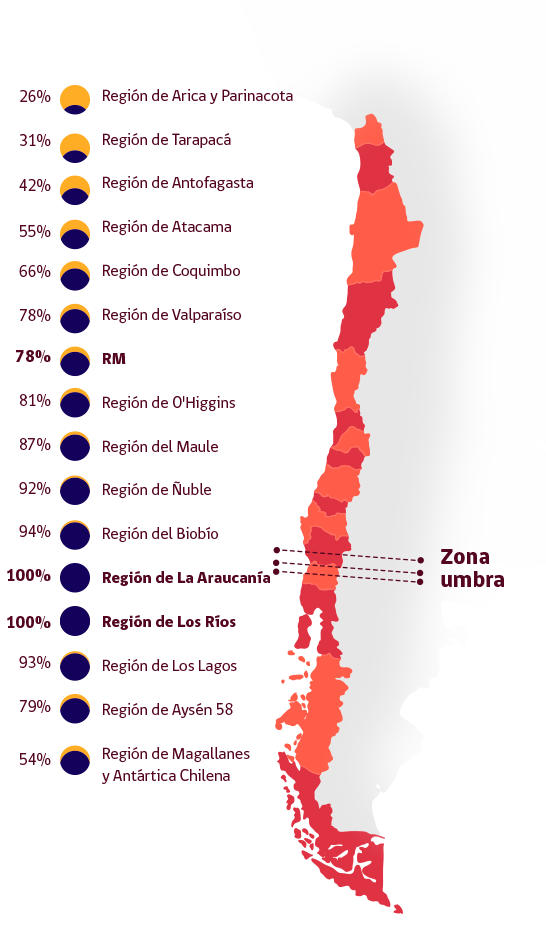 - La Araucanía: Iniciará a las 11:39 y su máximo punto de oscuridad será a las 13:02 horas.
