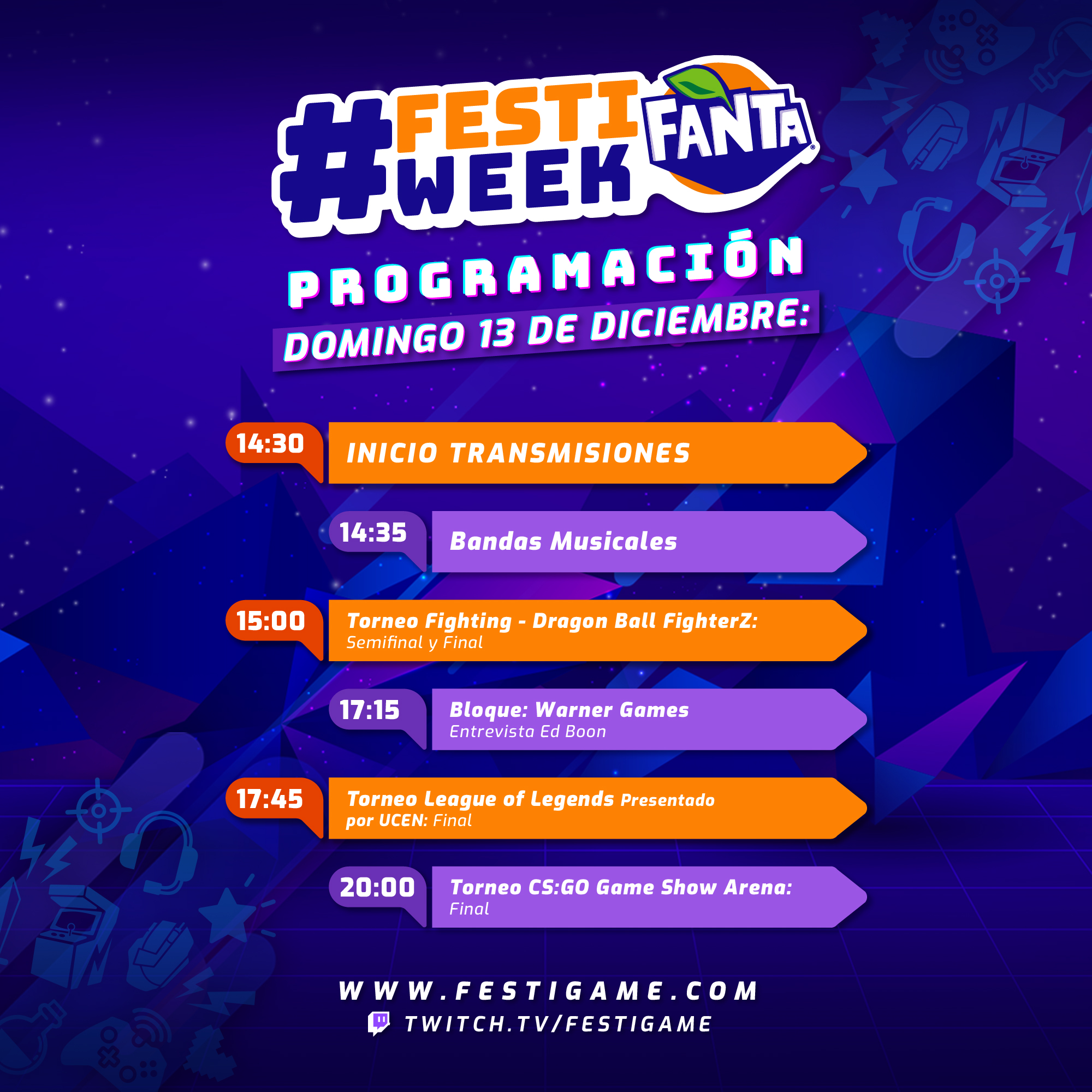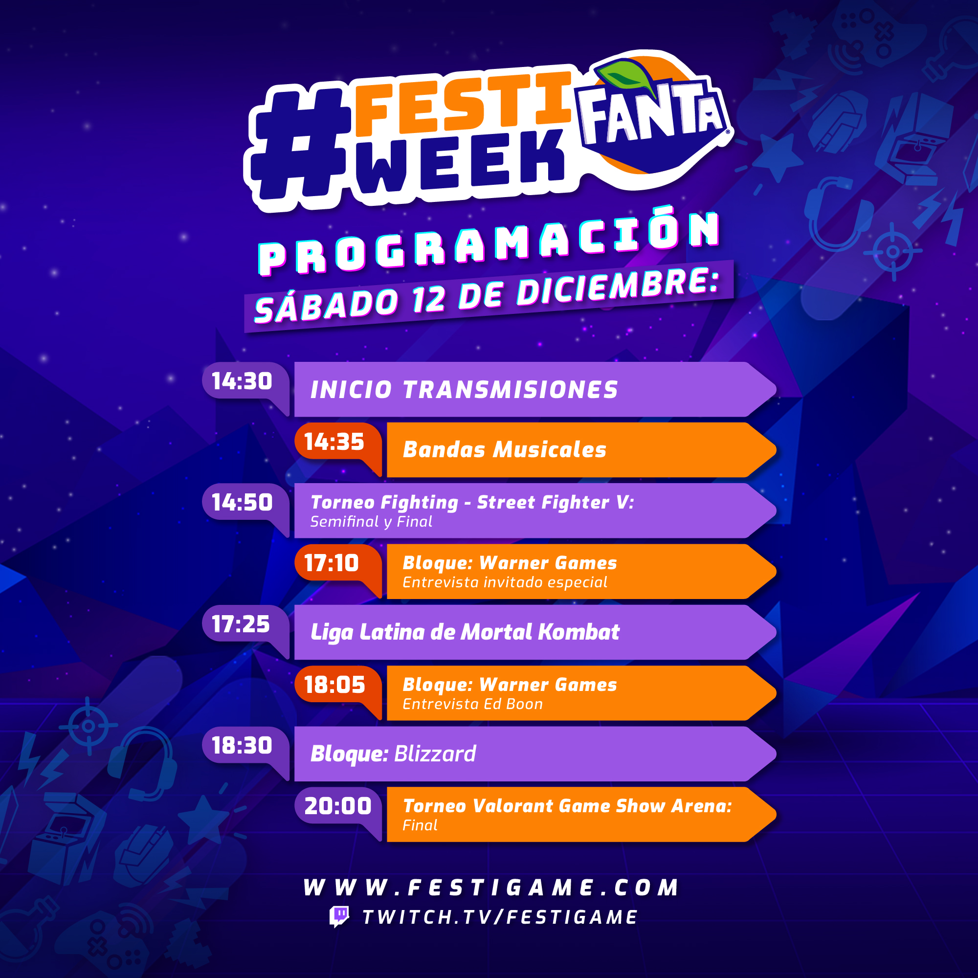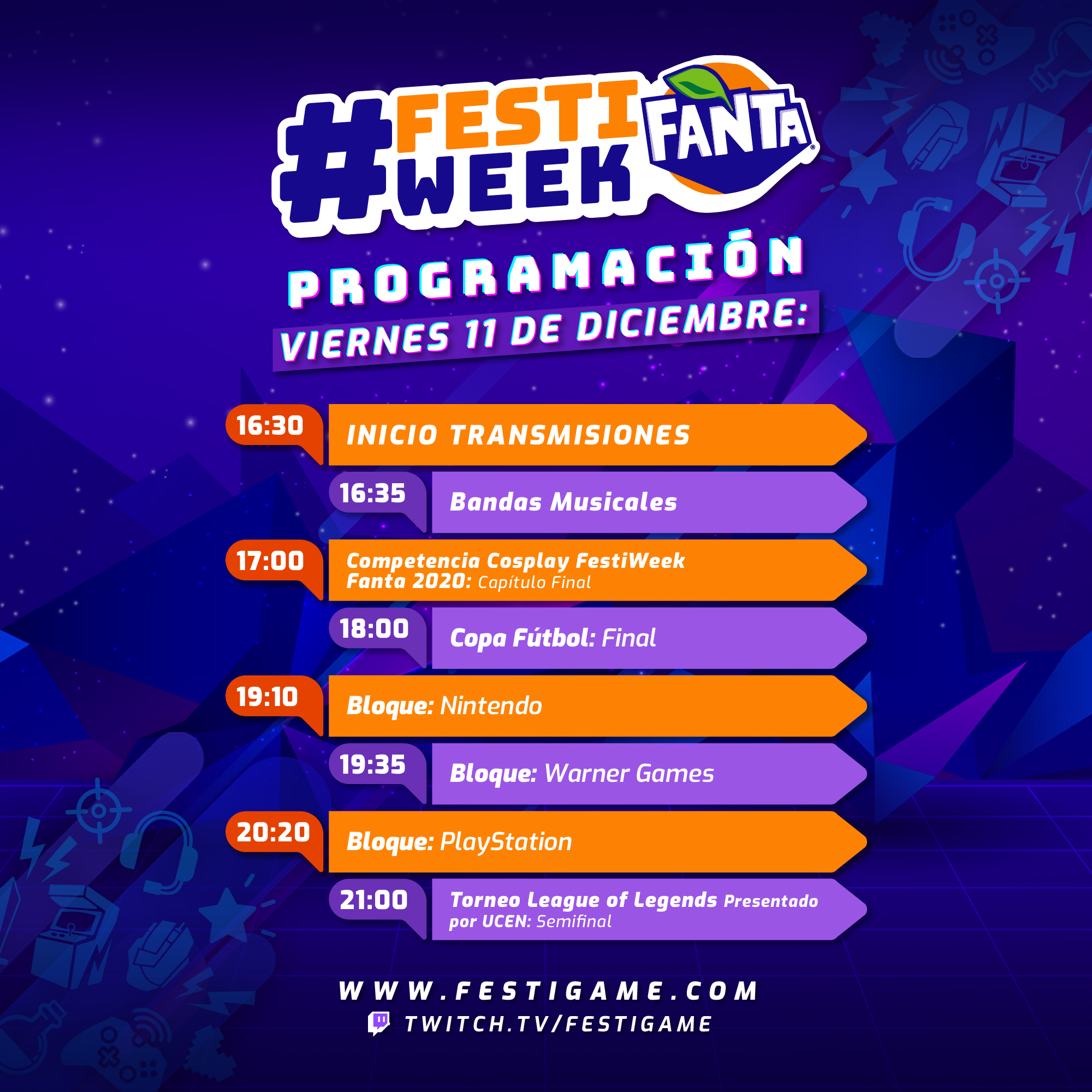 Desde este 7 de diciembre hasta el domingo 13 se realizará FestiWeek Fanta 2020, el evento digital gamer más grande de Latinoamérica donde FestiGame adaptó sus escenarios principales a lo digital para que todos puedan disfrutar de lo mejor de gaming.