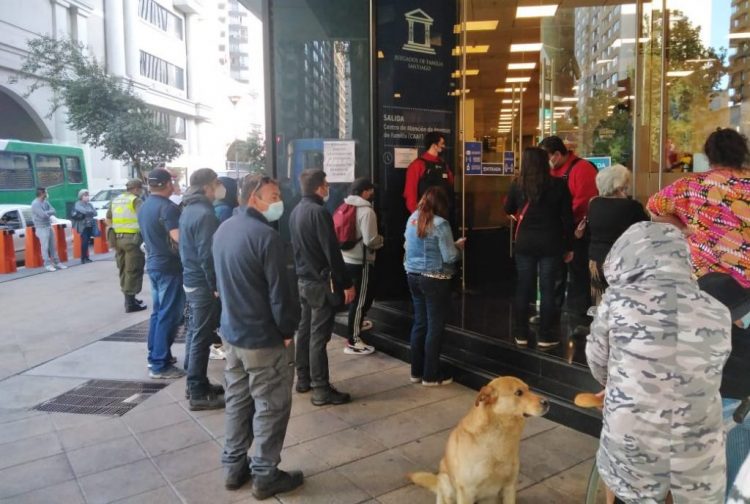 Esta jornada se han registrado largas filas en las afueras de los Tribunales de familia, ubicados en el centro de Santiago, por las demoras que se han producido en el pago de las deudas de pensiones alimenticias con el primer retiro del 10% de ahorros de las Administradoras de Fondos de Pensiones (AFP).
