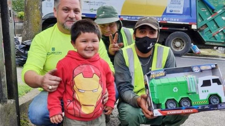 A raíz de esta situación, los trabajadores decidieron sorprender al pequeño y le llevaron de regalo un camión recolector de basura de juguete.