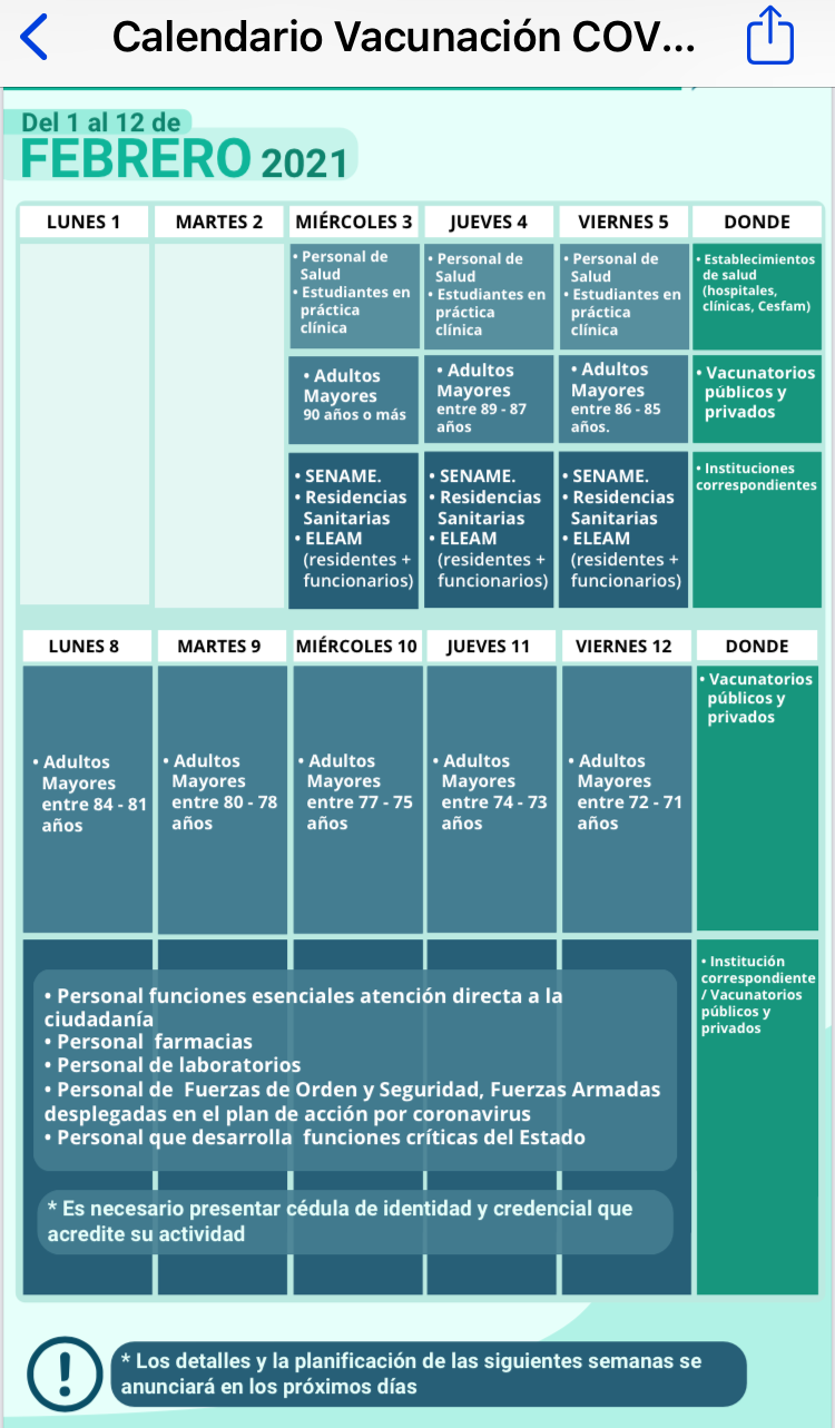 Según la información entregada por el presidente esta mañana este proceso iniciará con la vacunación de las personas mayores de 80 años la próxima semana. Luego se continuará con los Eleam y el Sename.