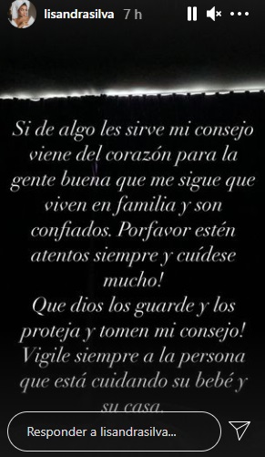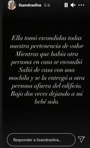 Lisandra Silva es bien activa en redes sociales y comparte todo tipo de registros, pero ahora ella dio a conocer que no la está pasando bien ya que denunció haber sido víctima de robo por quien era asesora de hogar de su domicilio junto a Raúl Peralta.