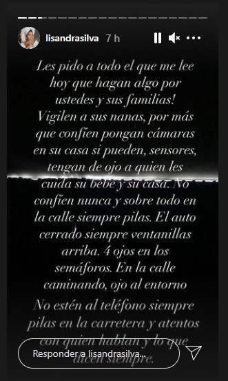 «No dejó de pensar que pudo haber entregado a mi hijo a cualquier persona diciendo que pensó que era orden nuestra. O haber dejado entrar a cualquiera a la casa. Somos muy vulnerables en este mundo. Lo importante es que estamos bien, lo material viene y va», agregó.