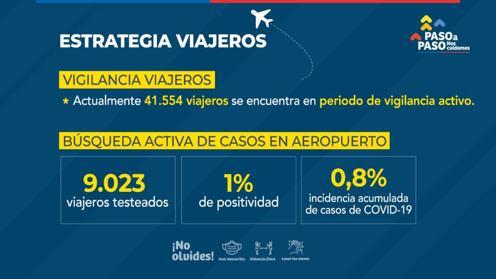 Durante el balance sobre la pandemia en el país de este jueves se dio a conocer “estrategia viajeros” . Se trata del protocolo que implementa la autoridad sanitaria en el aeropuerto de Santiago, buscando impedir la propagación del coronavirus.
