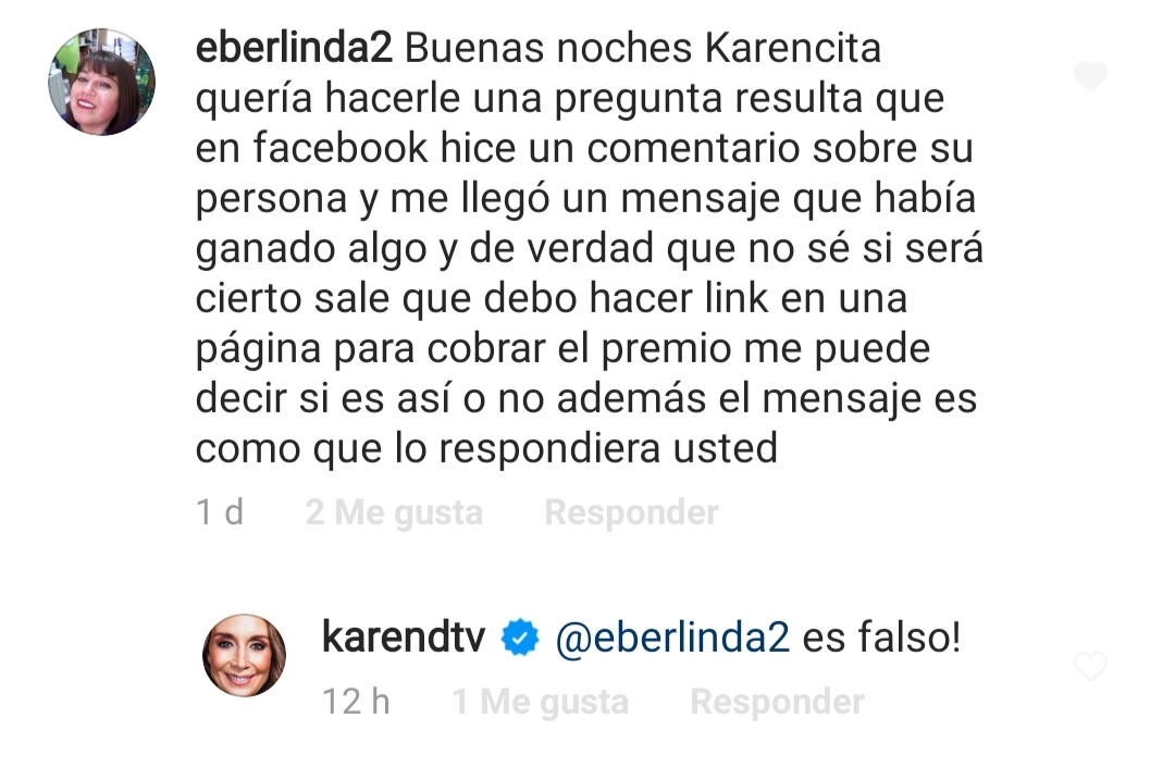 Como era de esperar ella dejó más que claro que esta situación es muy grave para ella, ya que está siendo víctima de usurpación de identidad, además de engañar a la gente.