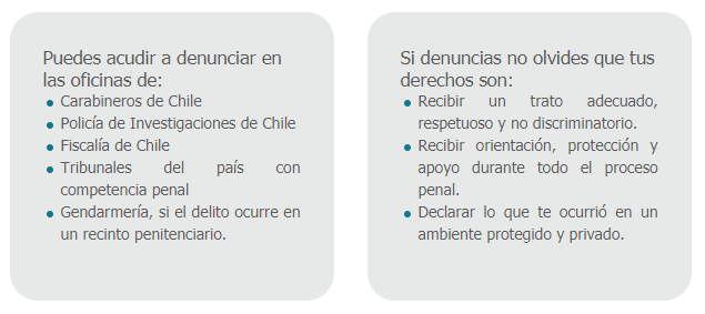 Si es que vives en Chile, y eres o fuiste víctima de abuso sexual y/o violación, puedes contactarte con las oficinas de PDI, Fiscalía de Chile, Tribunales del país con competencia penal, además existen muchas fundaciones y organizaciones que te brindarán ayuda.