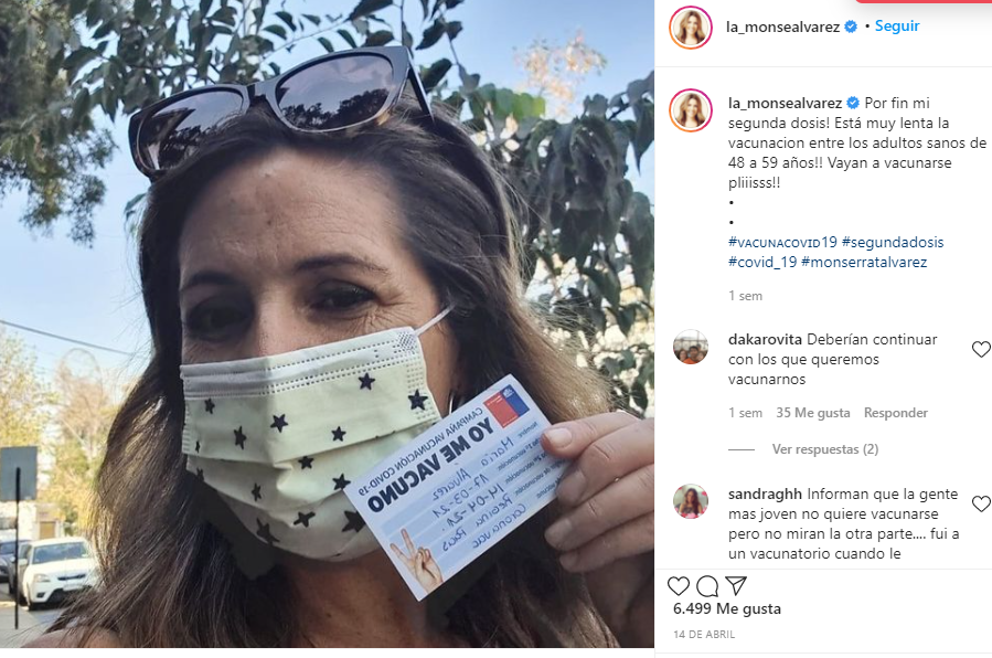 Monserrat Álvarez la semana pasada subió una foto a Instagram. Esto para contra a sus seguidores que había recibido la segunda dosis de la vacuna contra el Covid-19.