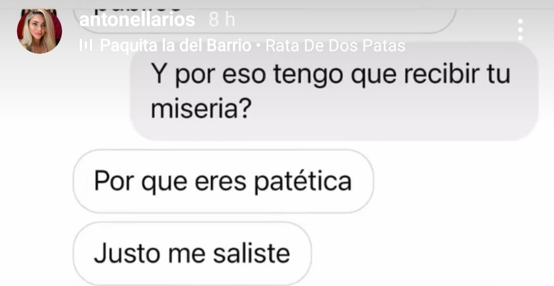 Y bueno Antonella Ríos además compartió un fragmento de la conversación que tuvieron, en la que la mujer la lenó de mala onda.