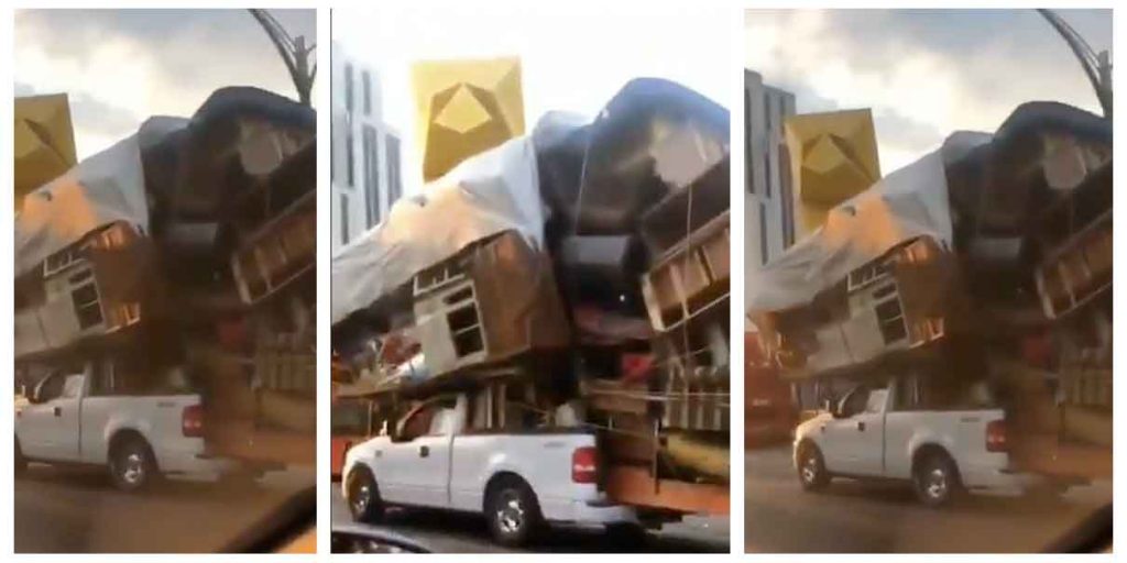Esto es precisamente lo que sucedió luego que se captara a una camioneta con una gran cantidad de muebles encima.