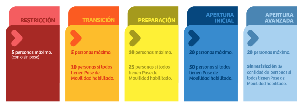 Se mantiene la estructura principal del Paso a Paso de 5 pasos entre los que se avanza y retrocede, de acuerdo a la situación sanitaria de cada territorio. Estos son: