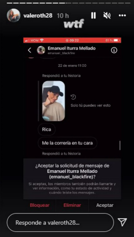 Vale Roth funó a desubicado seguidor: la acosaba por Instagram