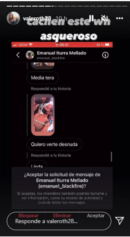 Es por estos mensajes enviados por Instagram directamente dio a conocer lo ocurrido revelando parte de los mensajes y la frase: “Cachen este wn asquerso”.