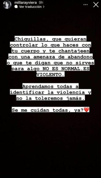 Ante las complicadas confesiones que le enviaron sus seguidoras, Millaray Viera decidió reflexionar en su red social sobre los distintas formas en las que se hace presente la violencia en la pareja.