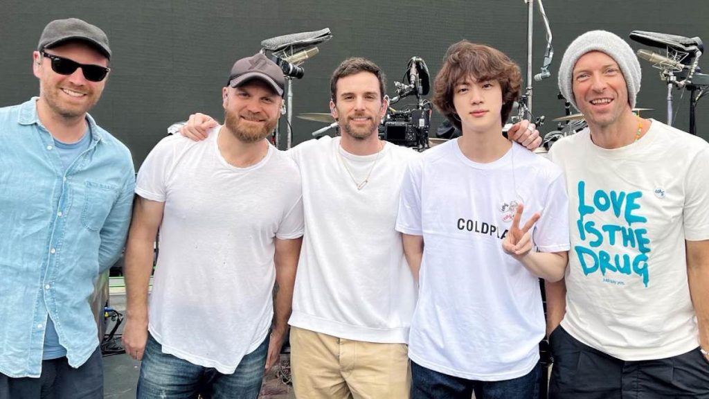 «¡Jin está aquí! Ensayos de #ElAstronauta, estadio River Plate, Buenos Aires. Primera presentación en vivo mañana #ColdplayLiveBroadcast 💜», señalaron en la cuenta oficial de los responsables del éxito «My Universe» junto a BTS.