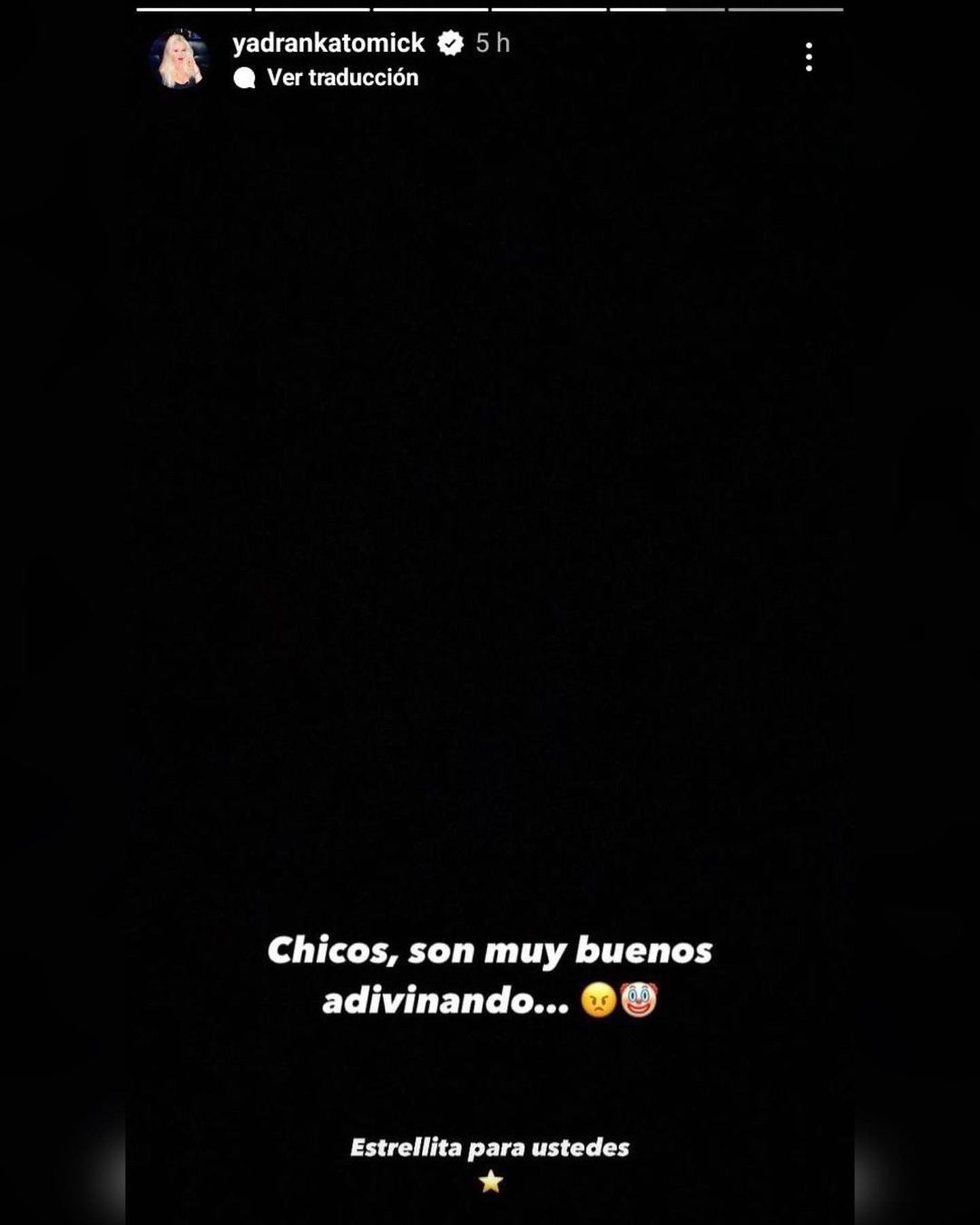 Pero la cosa no quedó ahí, ya que Yadranka Tomic compartió otra foto oscura confirmando las sospechas de sus seguidores. «Chicos, son muy buenos adivinando… 🤡 Estrellita para ustedes», cerró.
