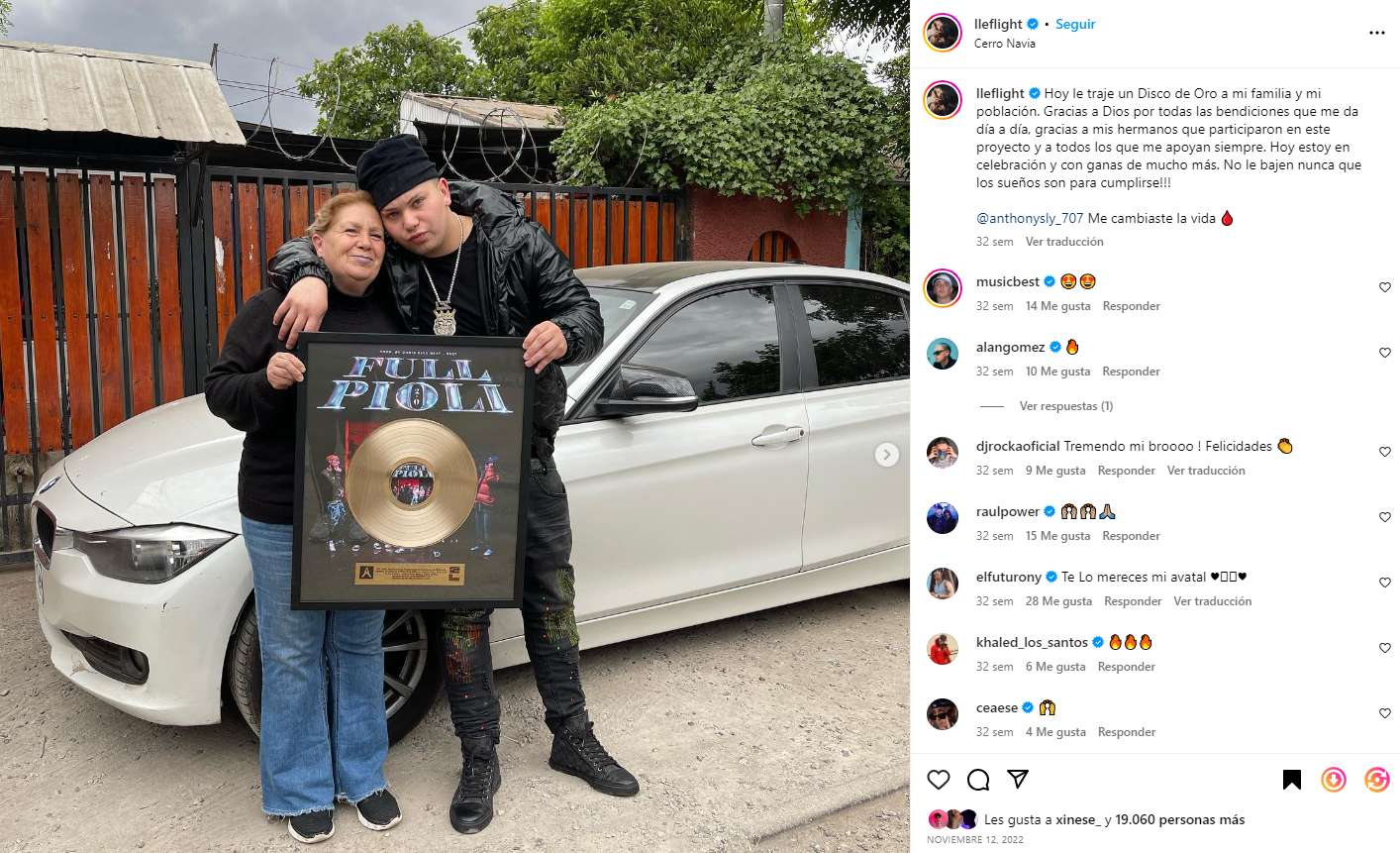 Cabe destacar que este tema le permitió ganar un Disco de Oro. Ante esto Lleflight no escondió su felicidad. «Hoy le traje un Disco de Oro a mi familia y mi población. Gracias a Dios por todas las bendiciones que me da día a día, gracias a mis hermanos que participaron en este proyecto y a todos los que me apoyan siempre. Hoy estoy en celebración y con ganas de mucho más. No le bajen nunca que los sueños son para cumplirse!!!», escribió en noviembre del año pasado en su Instagram.