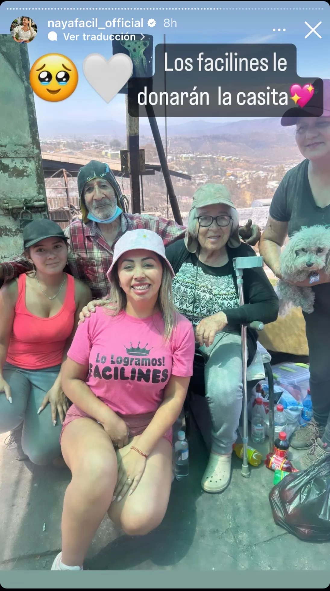 El aplaudido gesto de Naya Fácil hacia pareja de adultos mayores damnificados por incendios