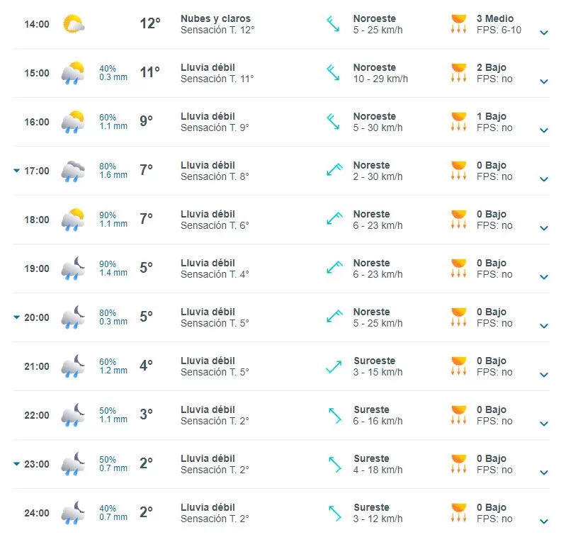 Mientras que para el jueves 22 de agosto se espera una máxima de 12 grados y una mínima de 0. En tanto, durante el viernes 23 de agosto, la máxima alcanzaría los 10 grados y la mínima sería de 1 grado.