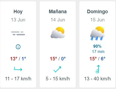 Además, de acuerdo al pronóstico del tiempo en Santiago del sitio ya nombrado, durante este sábado 14 de junio, la temperatura más alta sería de 15 grados y la más baja de 0 grados.