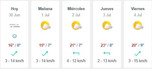 Mientras que para el viernes 4 de julio, se espera que la temperatura más alta llegue a 23 grados y la más baja a 9 según informó Meteored.