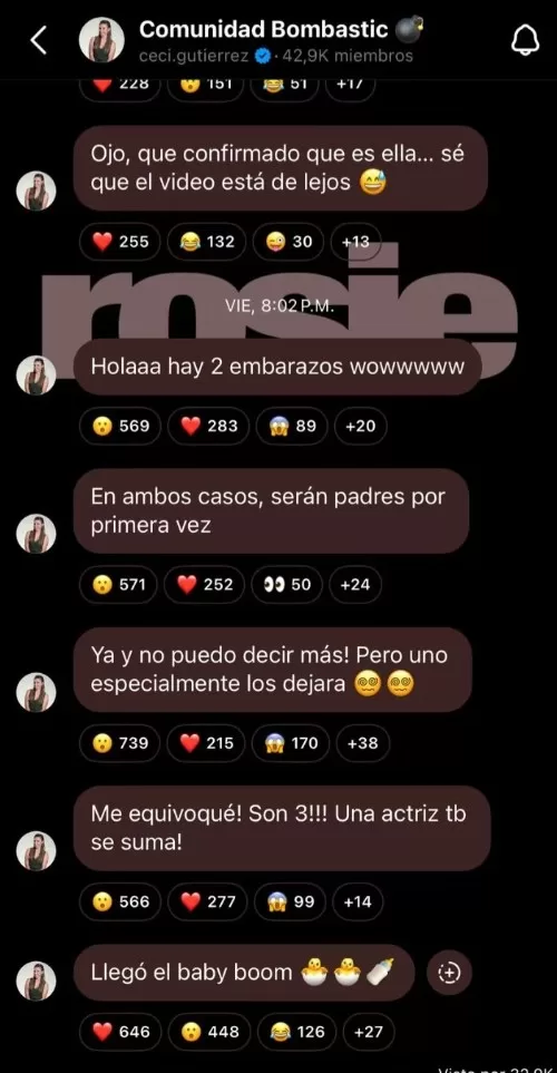 El viernes pasado, la periodista de farándula Cecilia Gutiérrez reveló una noticia que dio mucho que hablar en el mundo del espectáculo. Resulta que a través de canal de difusión de su cuenta de Instagram, reveló que «hay tres embarazos».