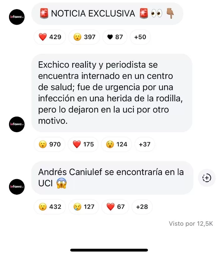 A través de su canal de difusión, el portal Infama señaló que Andrés Caniulef habría asistido al centro médico por una razón en específico. Sin embargo, debido a su situación habría terminado en la UCI.