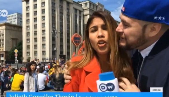 15 junio, 2018 El hincha que beso sin permiso a periodista colombiana causó polémica en redes sociales Una incómoda situación vivió una periodista colombiana cuando en medio de un despacho un hincha ruso se acercó más de lo normal.